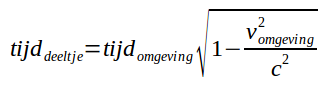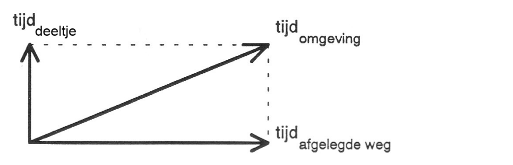 Als voorbeeld neem ik een fietswiel dat zowel ronddraait als ook een rechtlijnige beweging ondergaat. Wat is dan de totaal afgelegde weg van deeltjes op de velg en daarmee de totaal overbrugde tijd. De rotatie is de oorzaak van de eigen tijd en de totale afgelegde weg is de tijd van de omgeving.