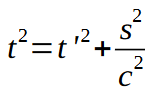 t is hier de tijd van de waarnemer en t’ is de tijd van het materiedeeltje.